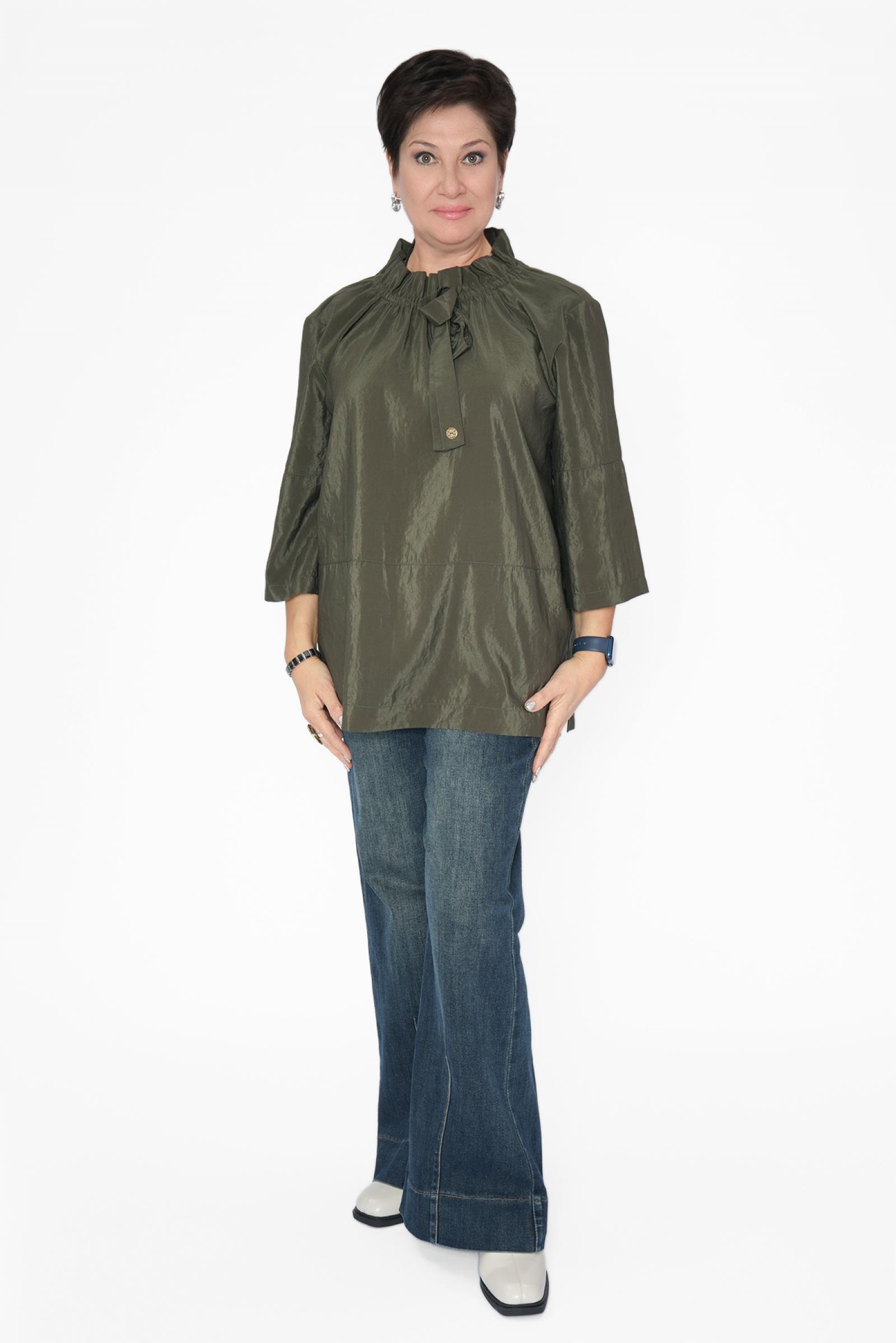 Блуза хаки резинка бант