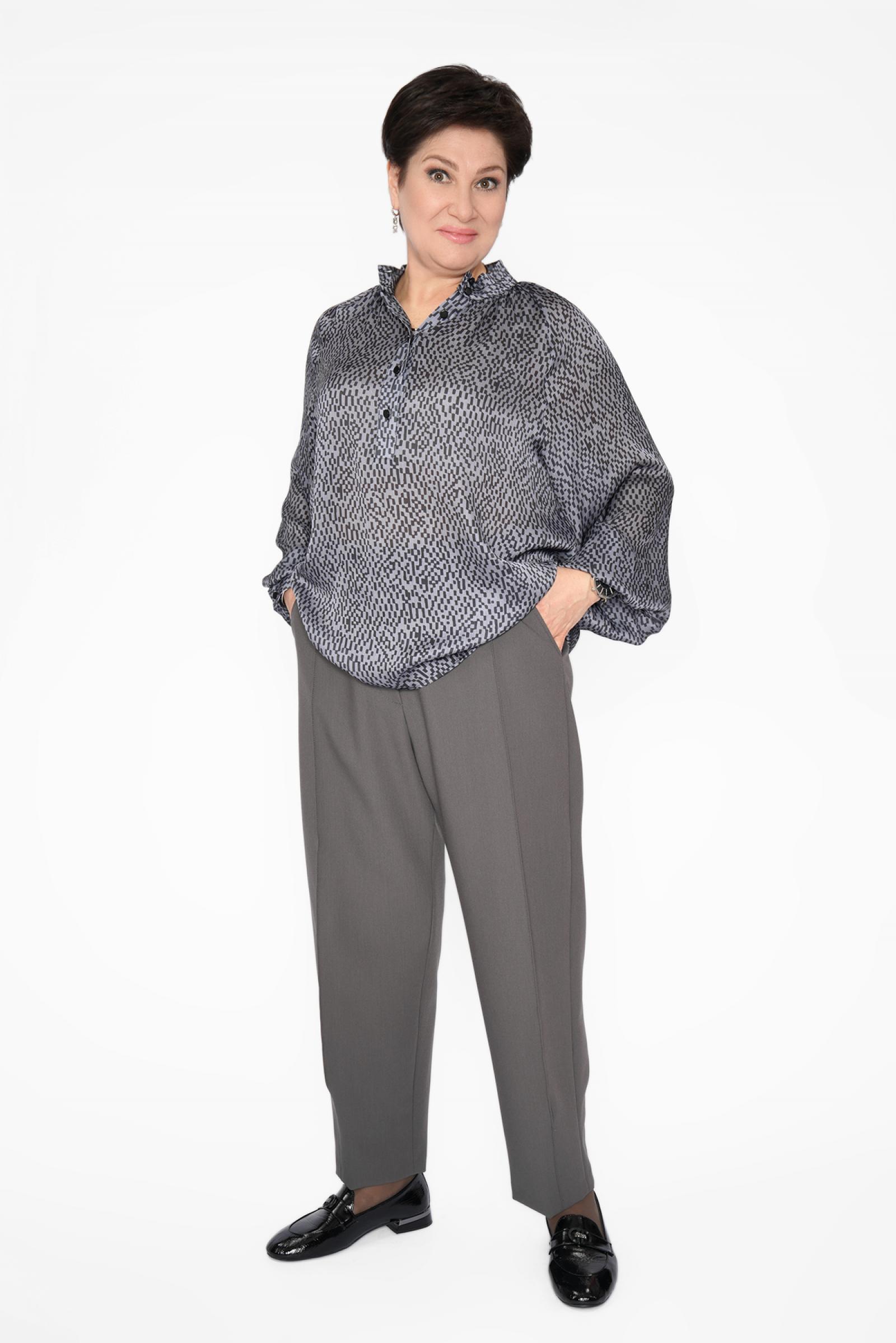 Блуза шифон ч/серая стойка